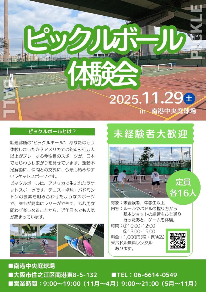 | 対象 | 中学生以上、ピックルボール未経験者 |