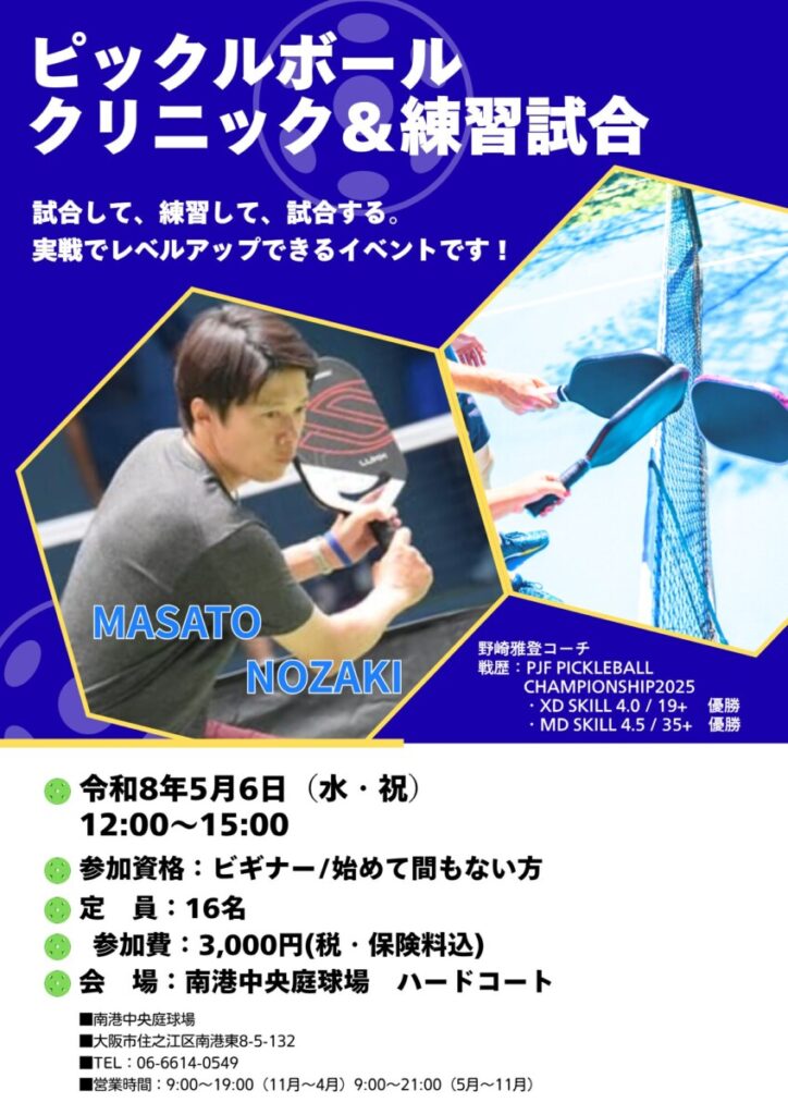 【主催・協力】主催:一般財団法人 大阪スポーツみどり財団 協力:一般社団法人 日本ピックルボール協会